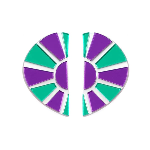 Material: Metacrilato espejo verde, espejo morado, blanco perla.