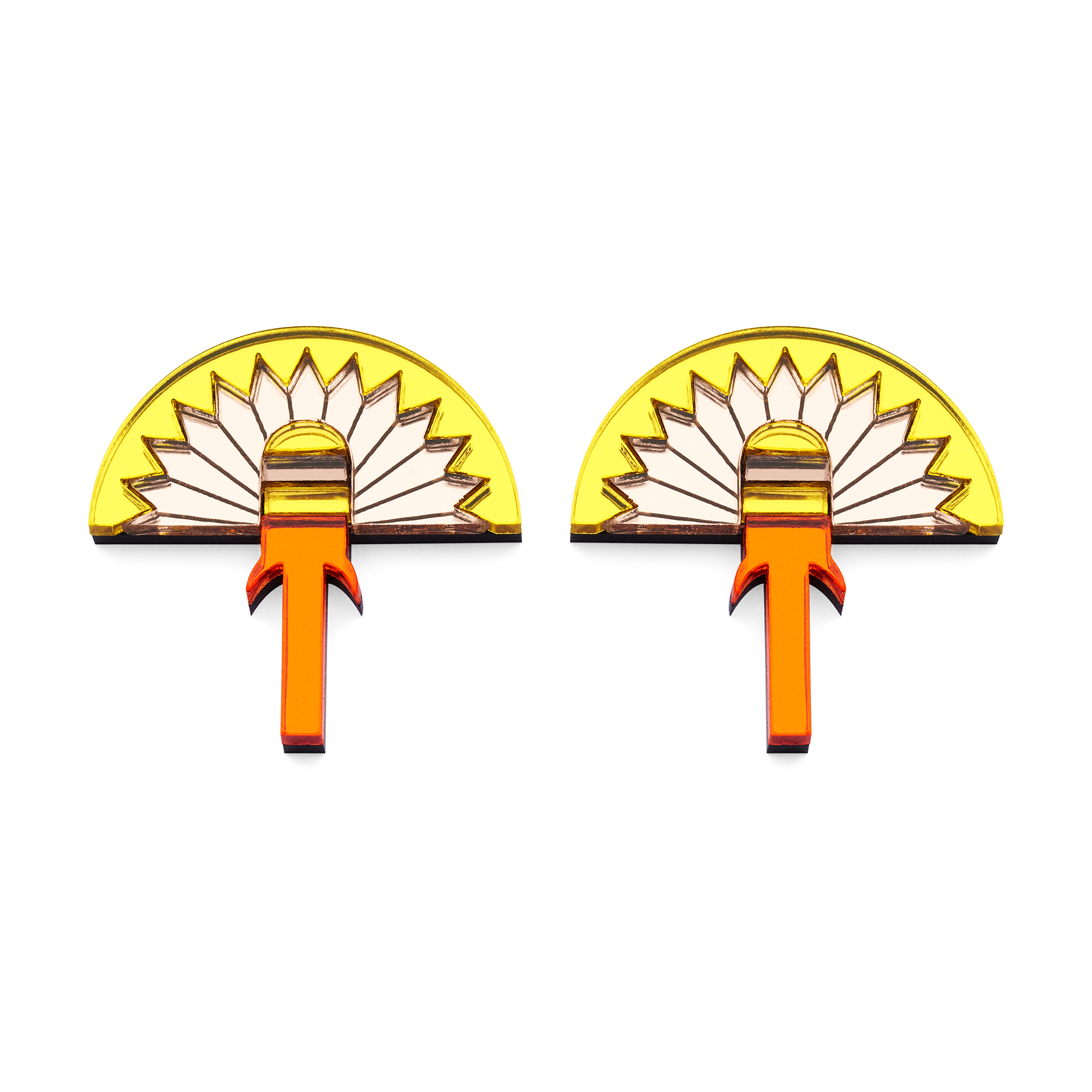 Material: Metacrilato espejo oro rosa, espejo amarillo, espejo bronce, espejo amarillo, espejo naranja. Base en negro.
