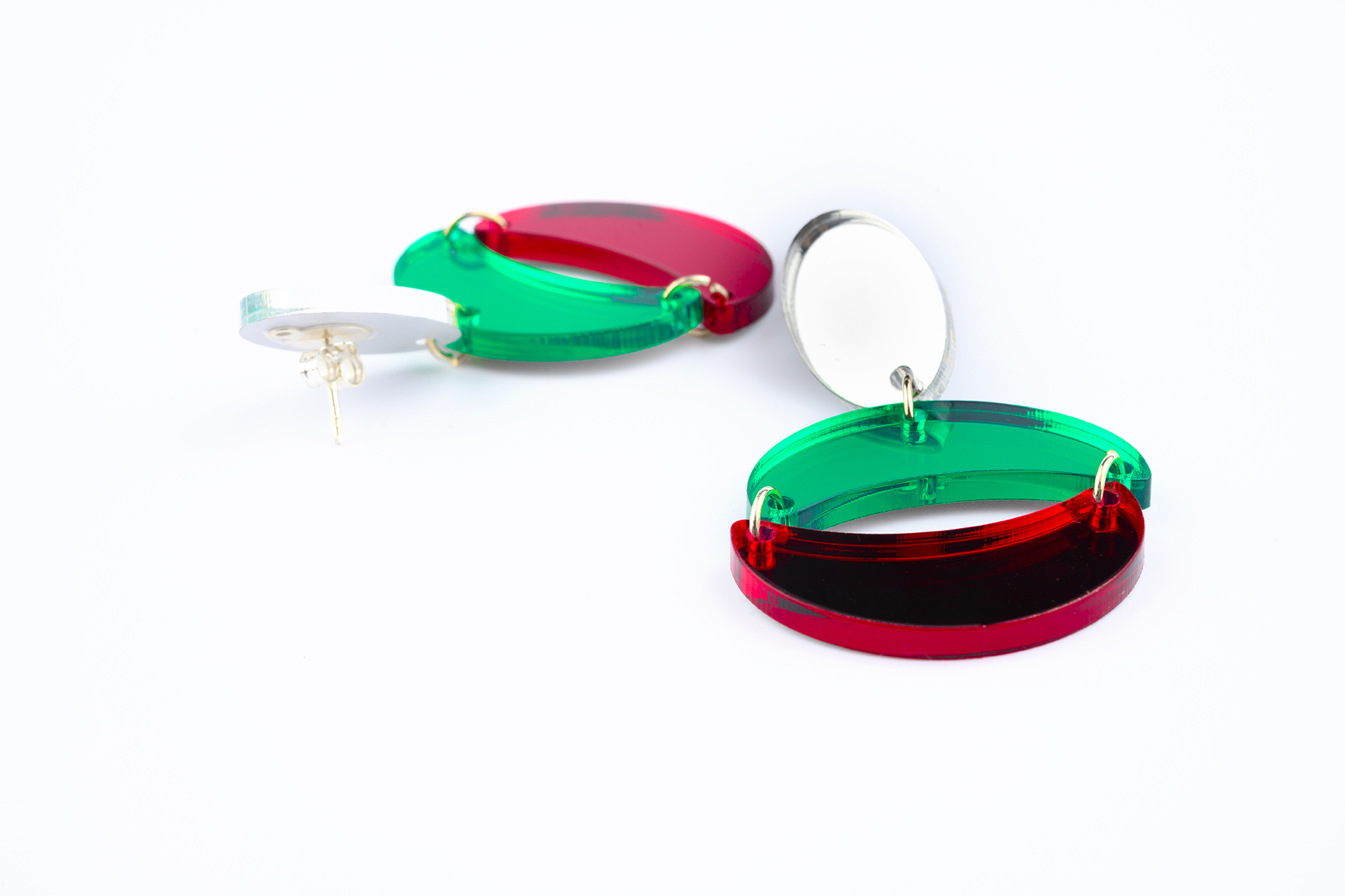 Material: Metacrilato Espejo Plata, Rojo y Verde