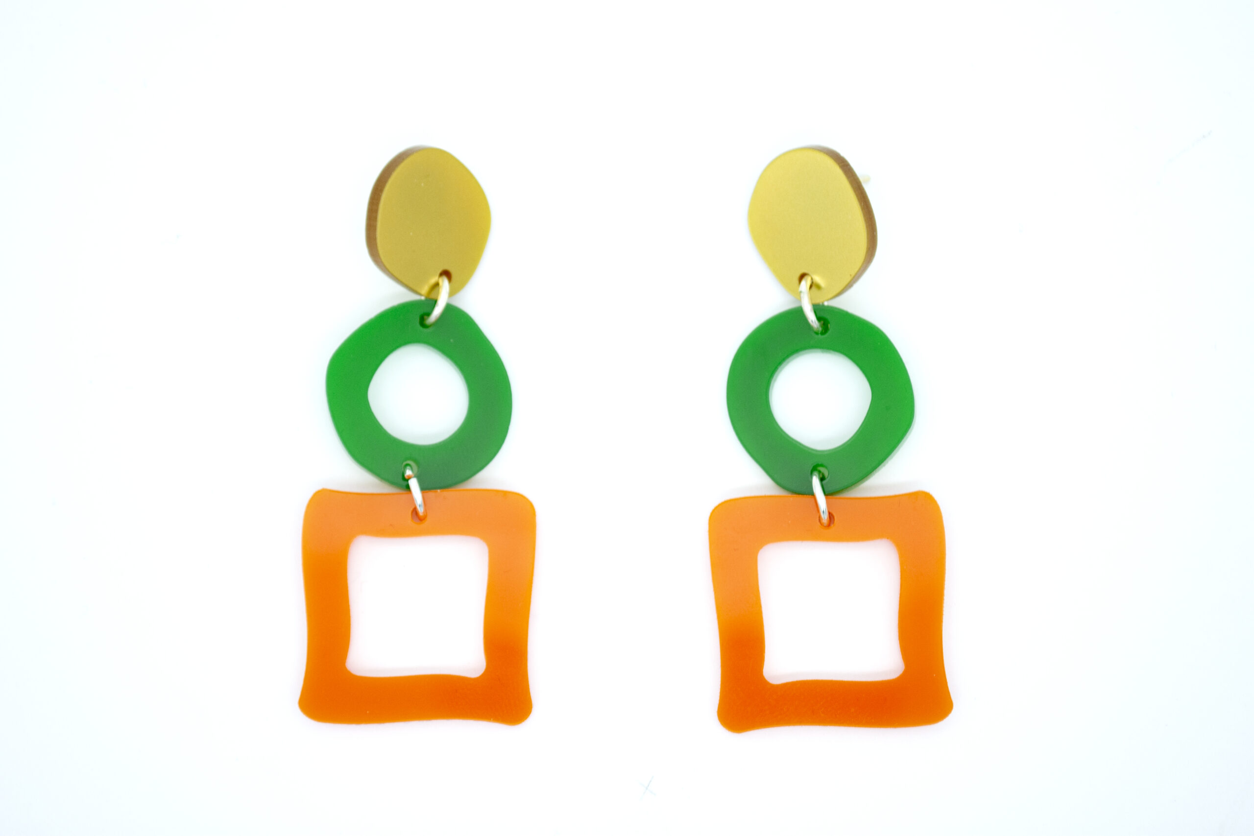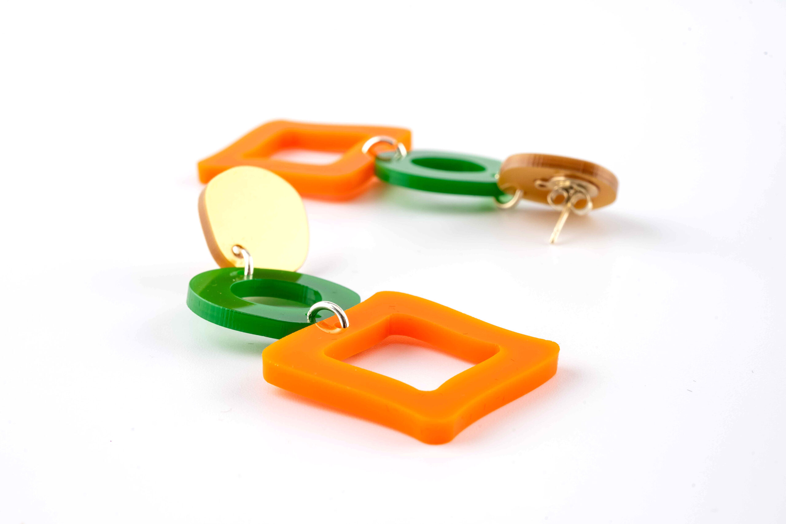 Material: Metacrilato dorado opaco, verde oscuro y naranja.