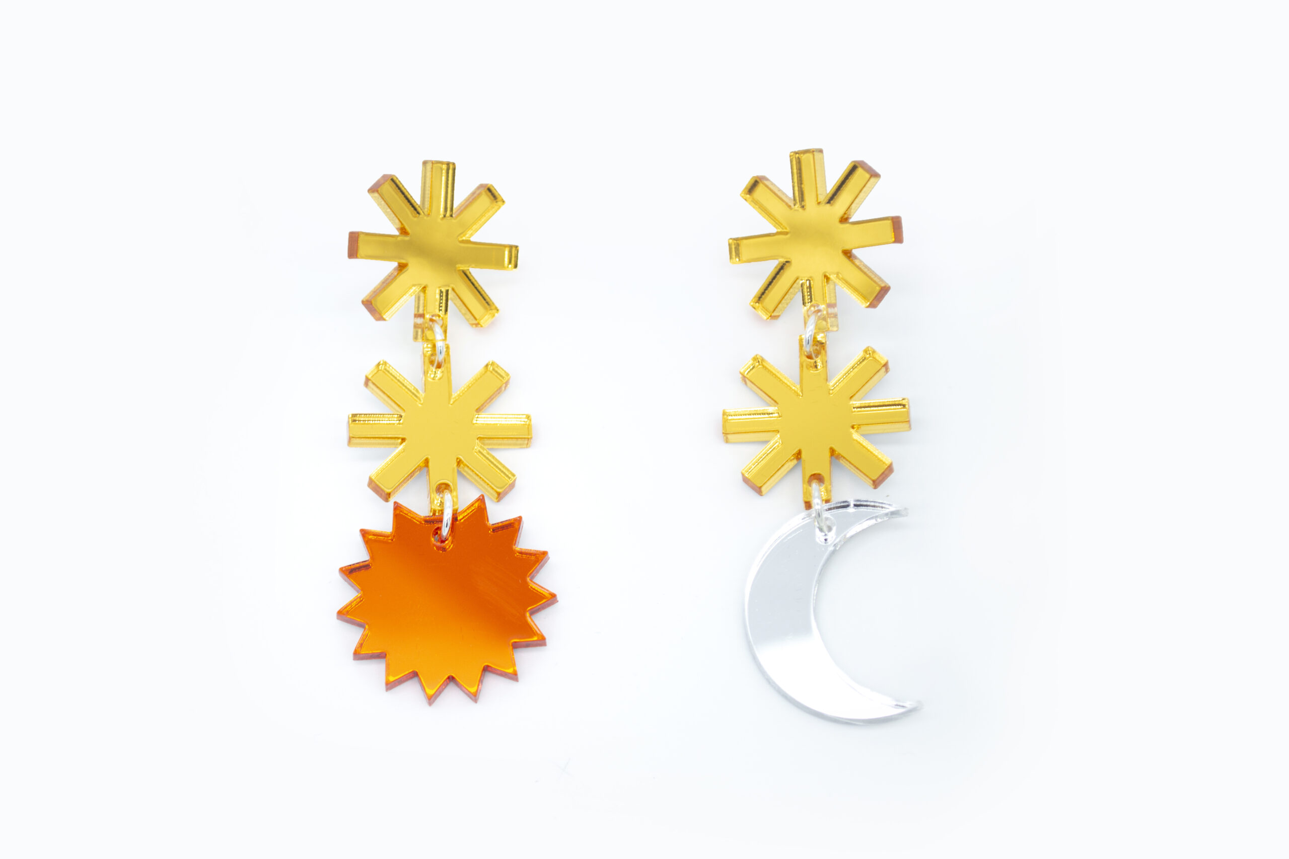 Material: Metacrilato espejo oro amarillo, espejo plata, espejo naranja.