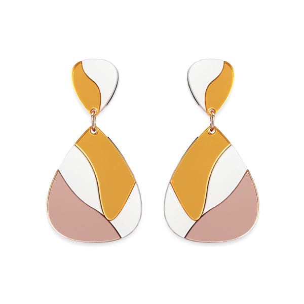 Material: Metacrilato espejo oro amarillo, blanco perla, espero oro rosa, base en negro.